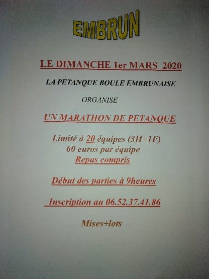 Rédigé par Pétanque Embrunaise le Mercredi 29 Janvier 2020 à 11:54