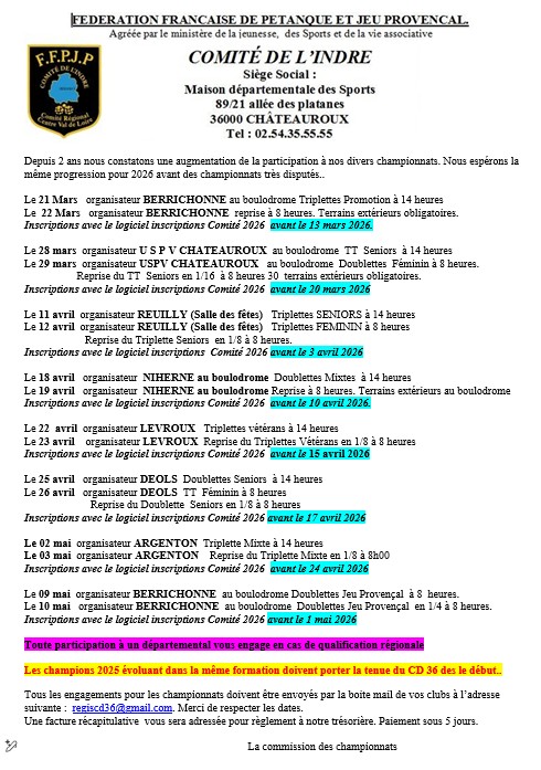 Rédigé par Comité Départemental de l'Indre le Vendredi 23 Janvier 2026 à 12:13