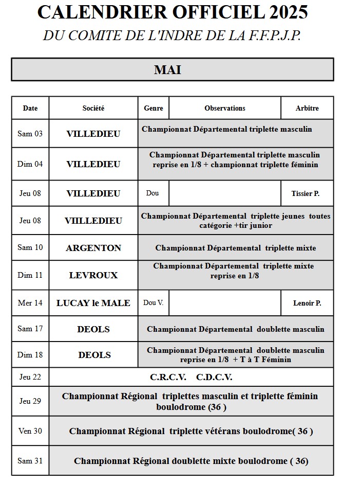 Rédigé par Comité Départemental de l'Indre le Mercredi 30 Avril 2025 à 09:08