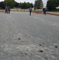 Lors de la 1ère mène, Châtelaillon marquait deux points supplémentaires pour mener 10 à 7. Le plus difficile restait à réaliser pour les Parthenaisiens. Dernière mène, 19m59 : Toto faisait tomber les six boules adverses avec ses deux boules... Maïté, un peu court puis un peu long, ne pouvait ajouter de point. Jean Luc devait faire le plein pour arracher le nul et donner la victoire finale à son club. Sa première boule fut un peu courte mais dans le jeu. Il lui suffisait de la toucher pour rentrer à trois... Hélas, sa boule frôla son autre boule et Parthenay ne marqua que deux points !