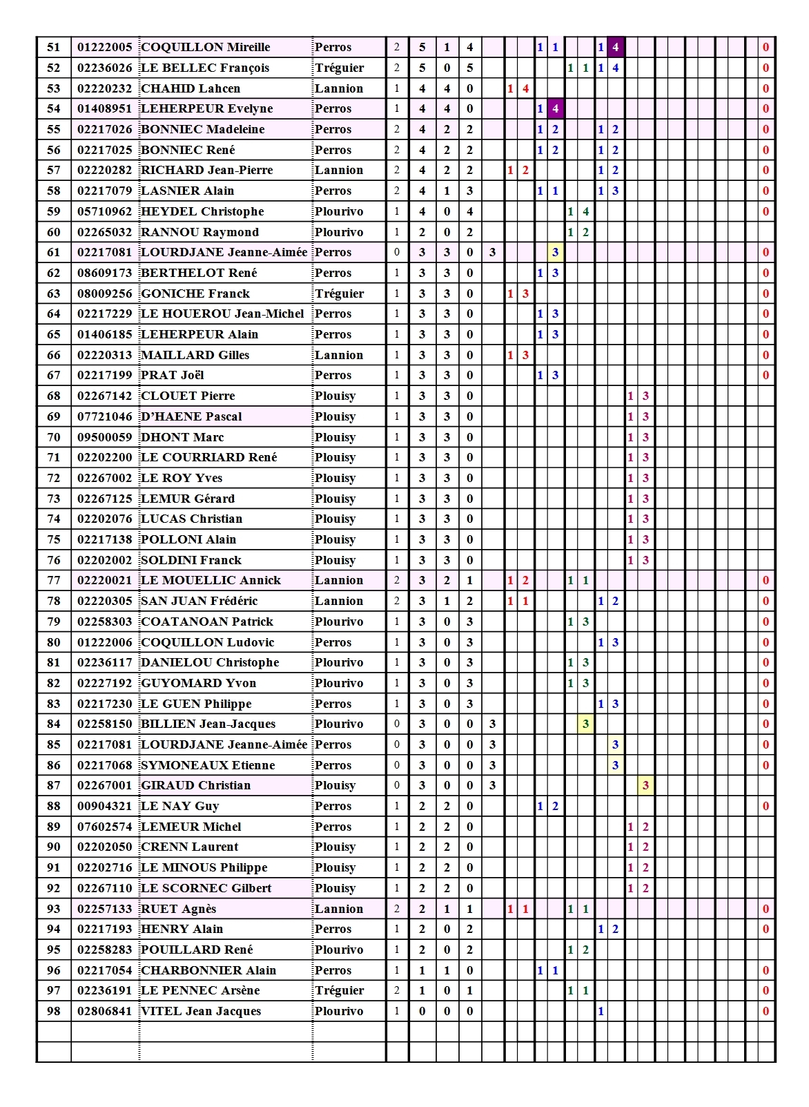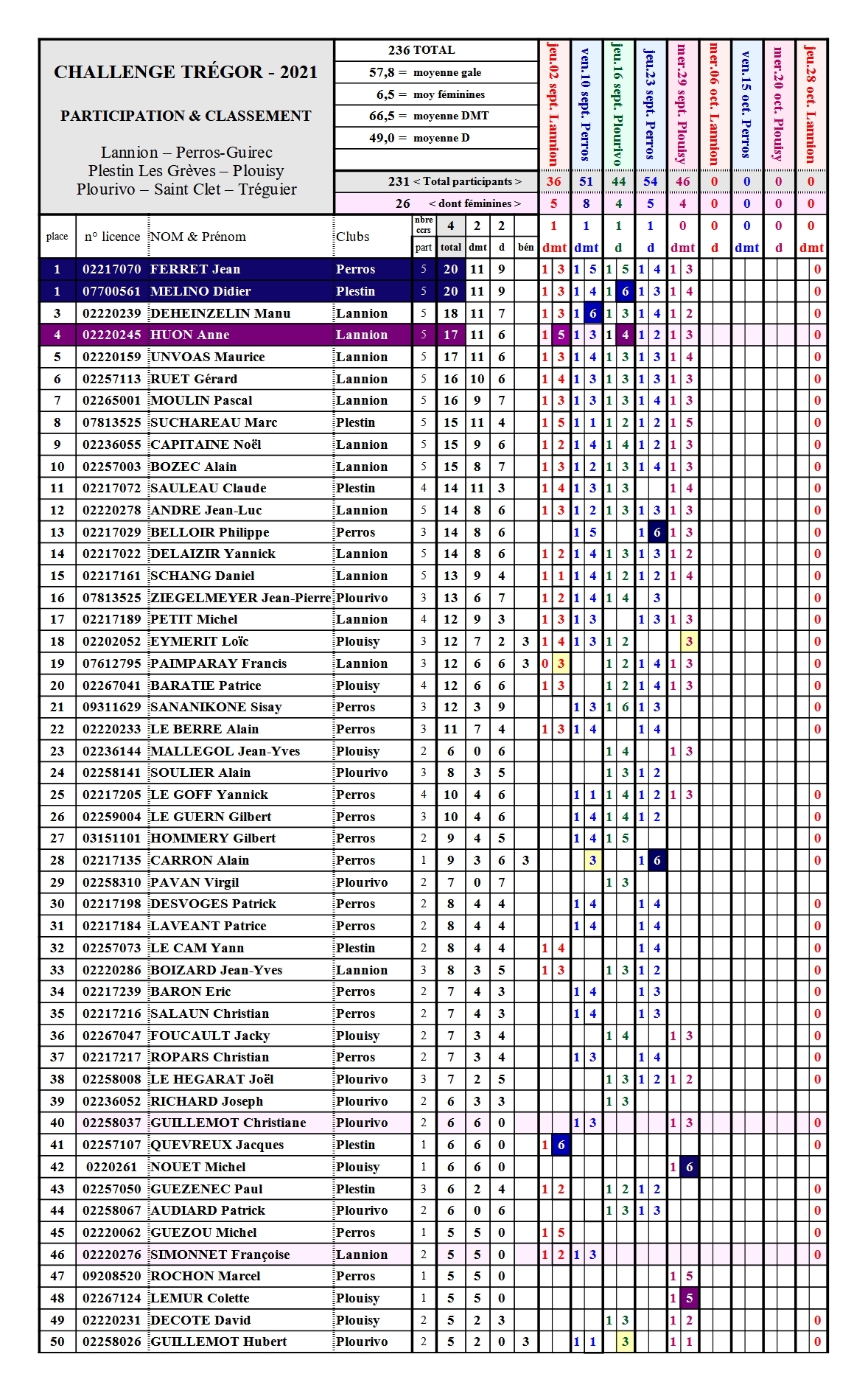 Classement Challenge du Trégor