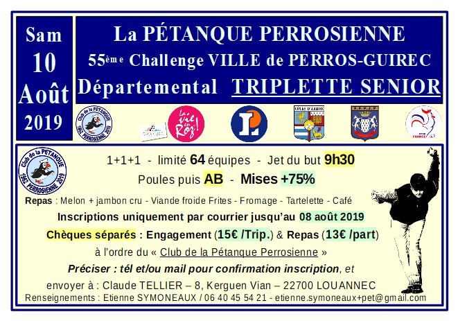 Vous trouverez ci-joint l'affiche de notre concours du 10 août 2019.