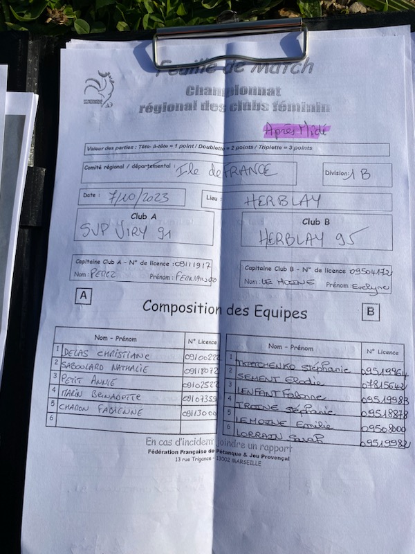 Feuille de match en PJ.
