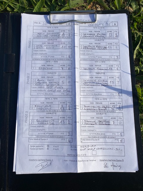 Phase 2 : Une défaite en tête à tête et une lourde défaite en triplette et Herblay s'envolait. Score : 7 à 1.