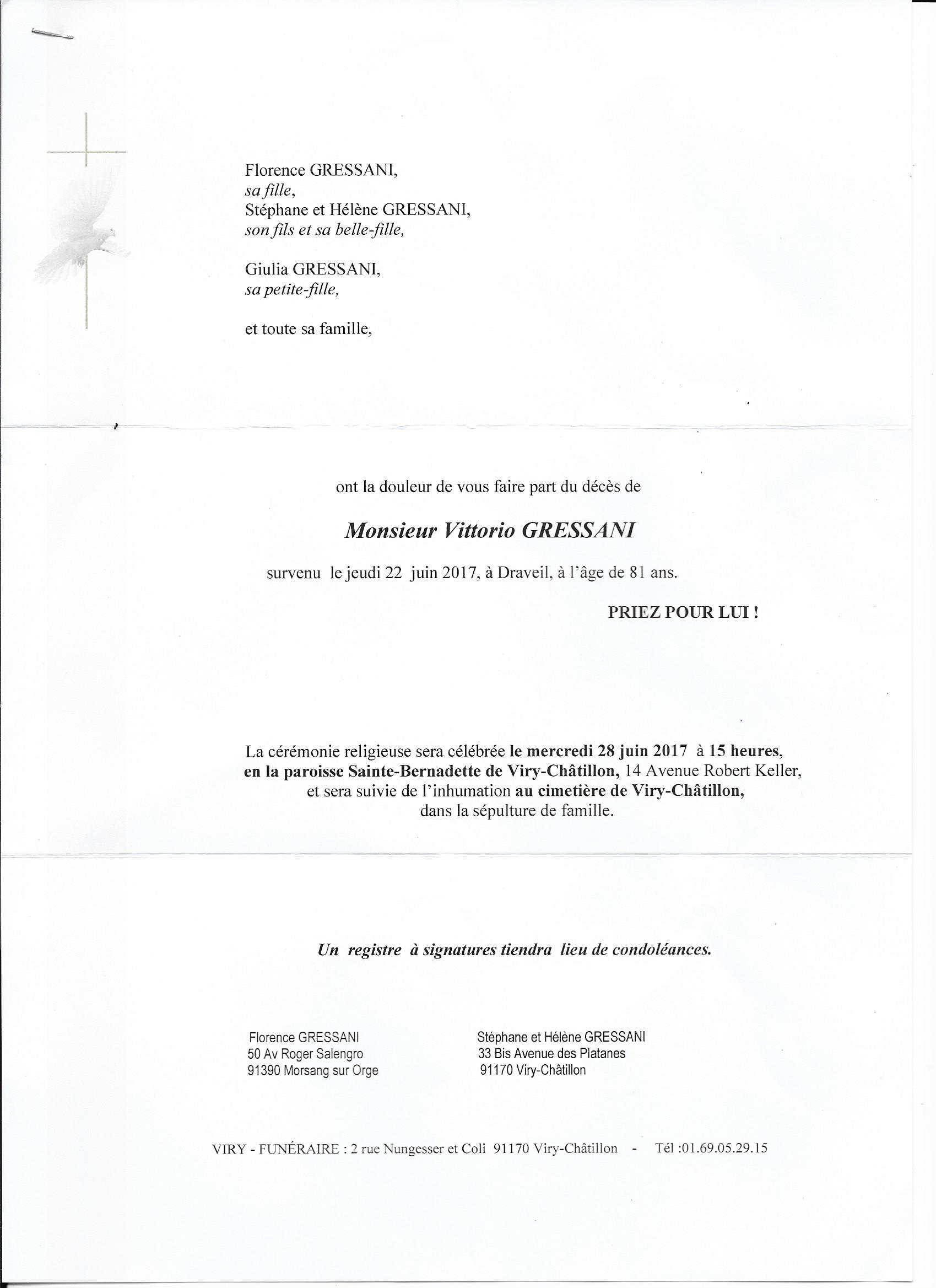 Ses obsèques ont eu lieu le jeudi 28.09.2017 à 10 H en l’église Sainte Bernadette de Viry-Châtillon. La SVCP a déposée une gerbe à l’église avec un petit mot de condoléances.