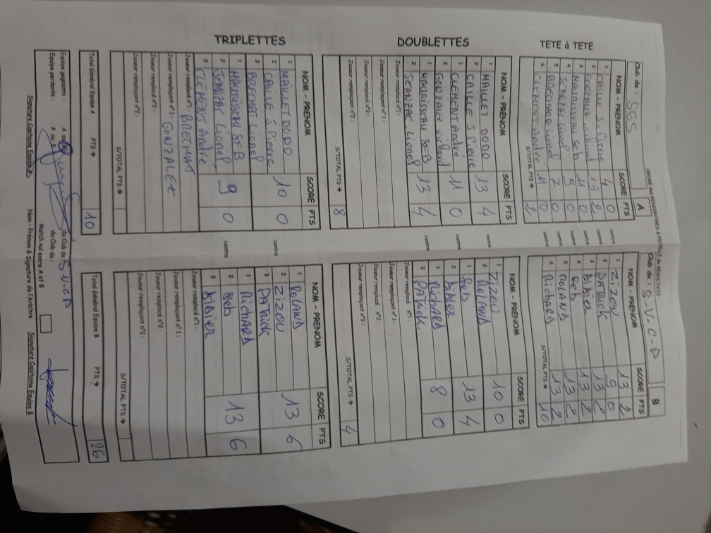 On ne va pas vous faire le coup du match de la SVCP 4 car on a vu que cela ne marchait pas ! Les deux triplettes perdues alourdissaient la feuille de match. Score final : 6 à 30.