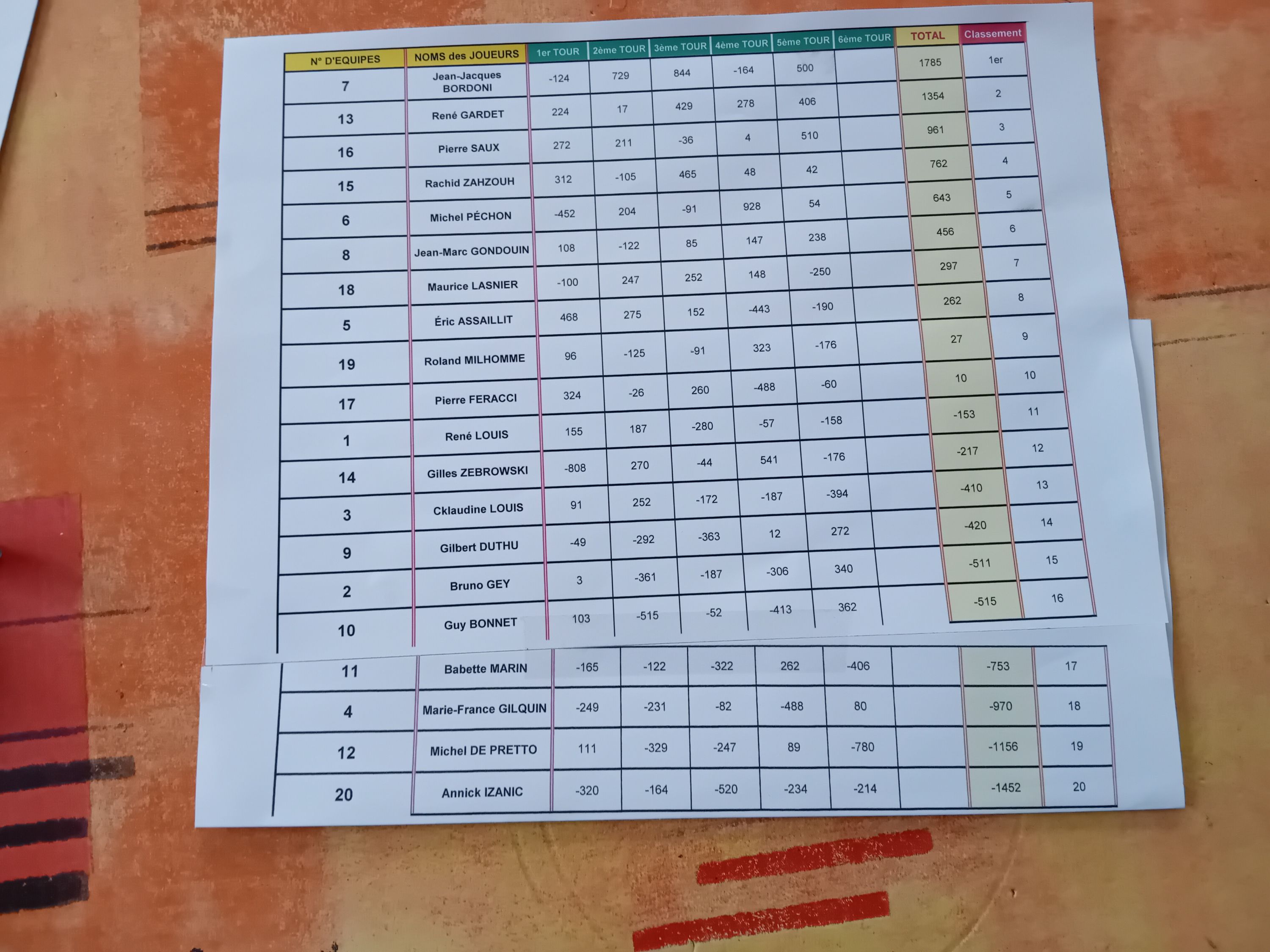 1er : Jean-Jacques Bordoni avec 1785 points,