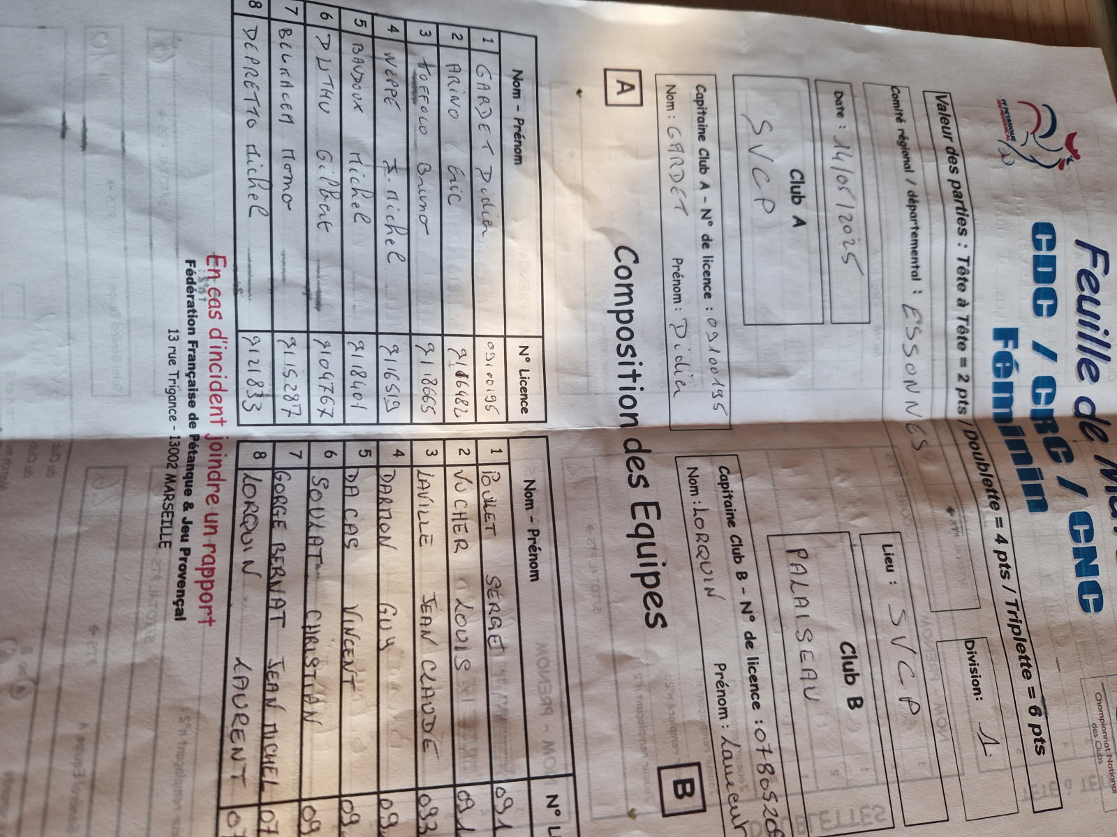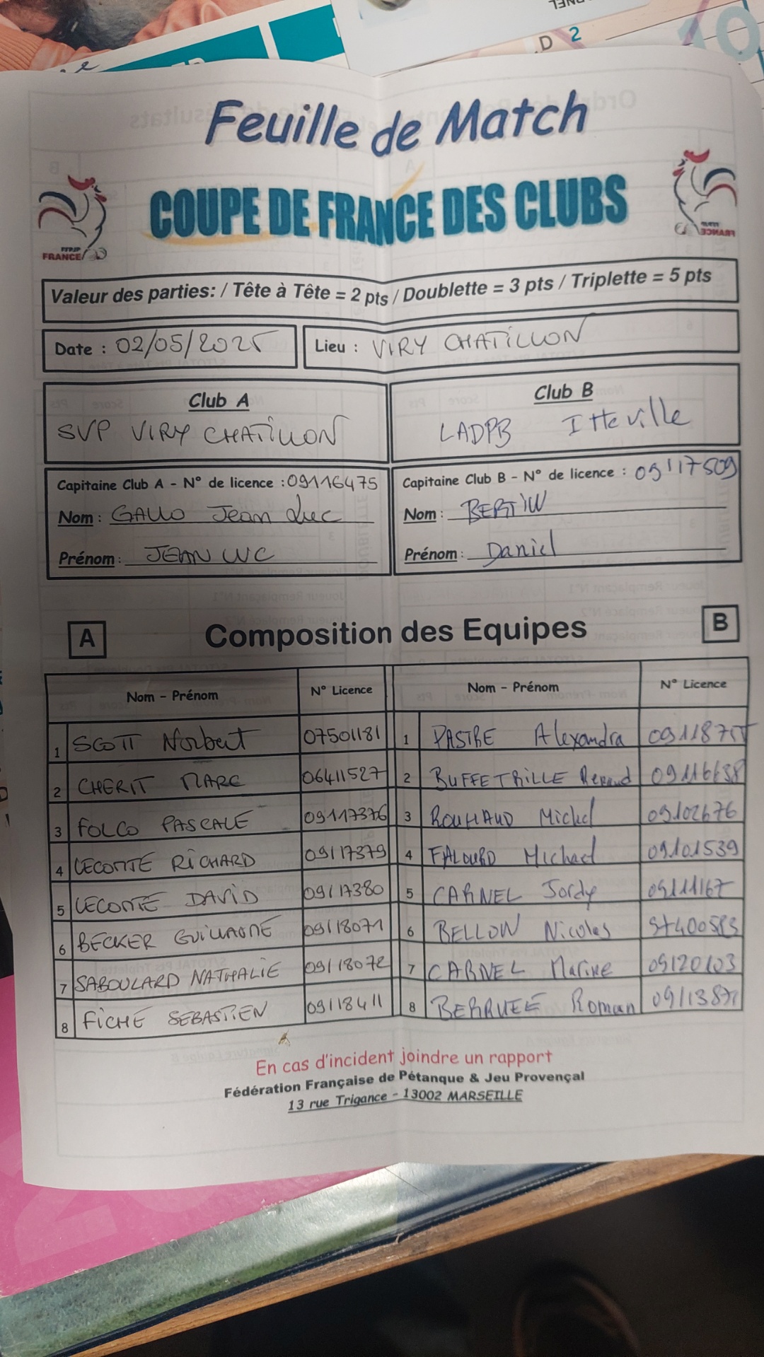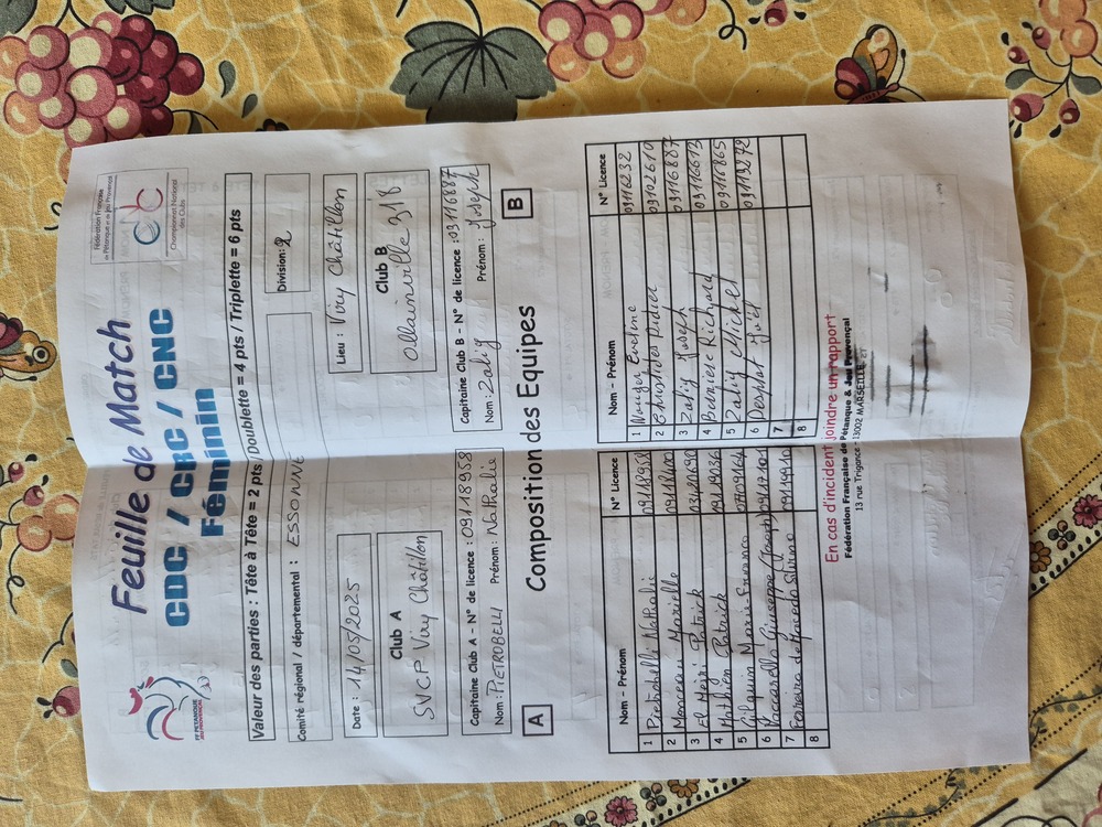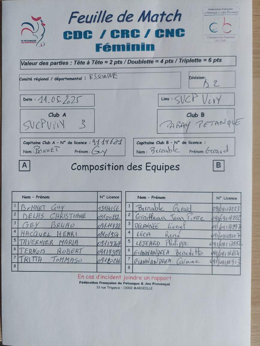 Feuille de match en PJ.