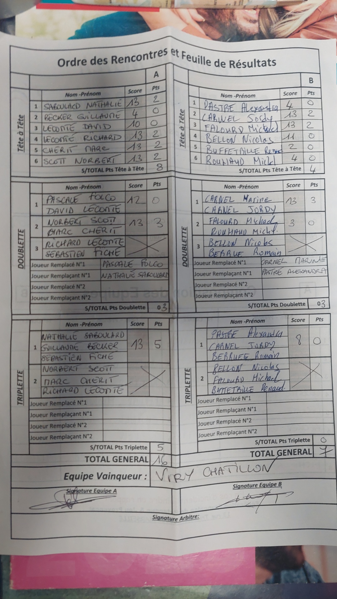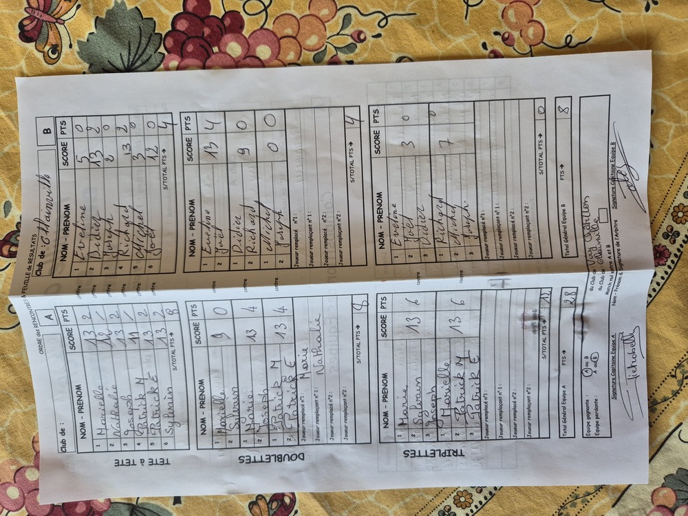 Feuille de match et classement (2ème ex aequo) en PJ.
