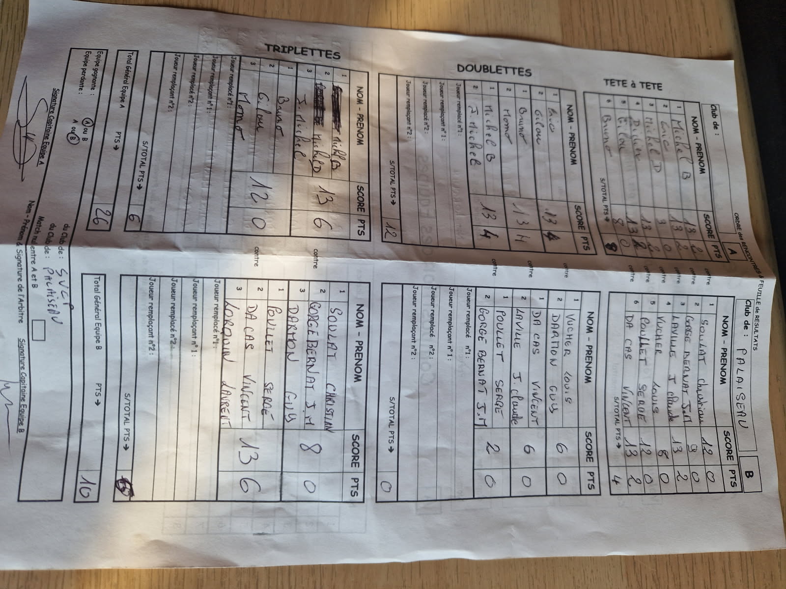 Le résumé du match tient en peu de mots ; la SVCP n'ayant gagné qu'une seule doublette, elle s'était mise en fâcheuse posture, à savoir devoir gagner les deux triplettes !