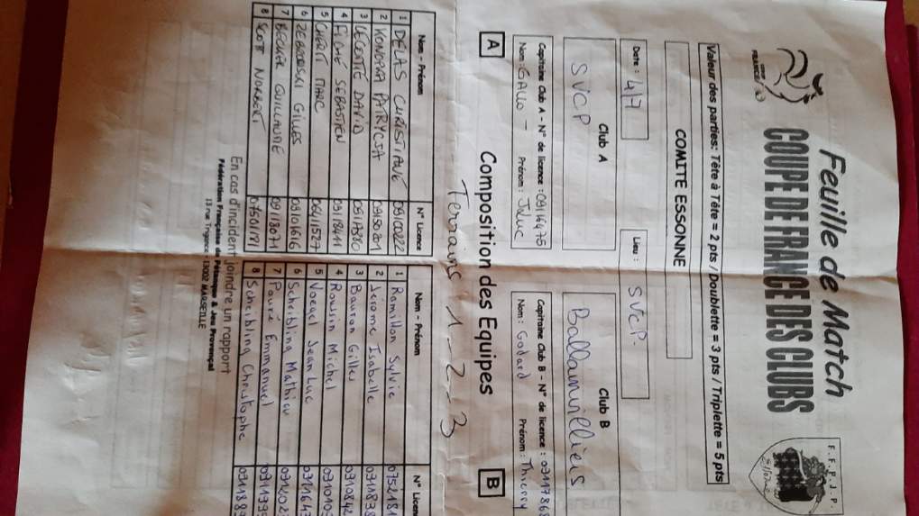 Feuille de match en PJ.
