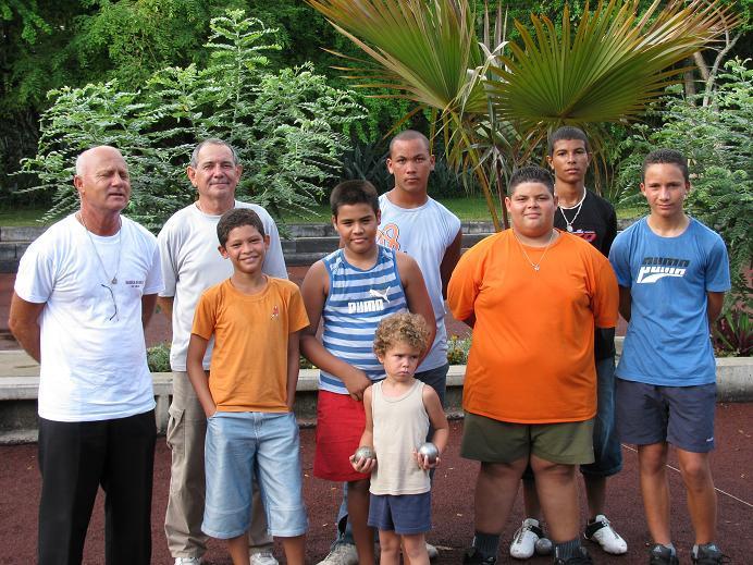 Pour preuve, invités à manger chez Jean-Luc qui nous a aimablement prêté sa case et un terrain transformé en boulodrome, pieds de porc, zourite et rougail saucisses étaient du voyage pour nous mettre en bonne condition. Après un petit entraînement et un bon repas (l’assiette d’Eddy en photo en témoigne !) bien arrosé, la pluie s’est invitée! Du coup nous sommes redescendus sur notre boulodrome et avons organisé un petit concours entre nous, plus quelques invités. Sous une chaleur étouffante, la journée s’est terminée à 20h par la victoire de Rodolphe et notre président Jo Guérin qui ont battu en finale Joël et Yvon. Voilà encore une bonne journée passée dans la convivialité et la bonne humeur!