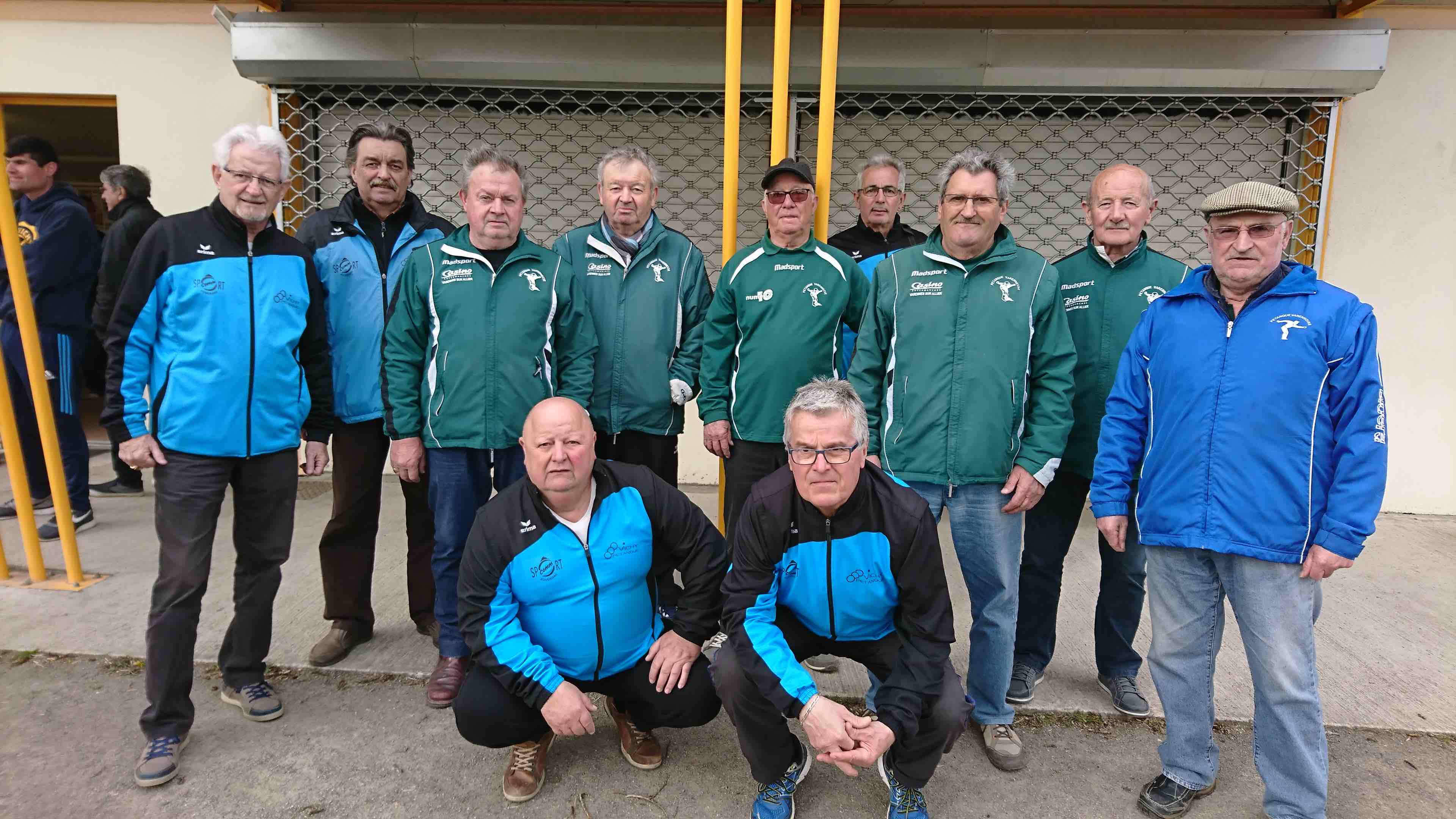 **COUPE DE L'ALLIER SUPER PRESTIGE Vétéran 1ère série Mardi 3 avril 2018 L'équipe de Vichy Pétanque s'impose face à l'équipe de Varennes sur le score de 9 à 2 . Equipe composée de : Jean Laurent RETALI (CAP) Claude PHILIBERT, Jean Claude CHEVALERIAS, Bernard BOLENDER, Patrick POLLONI, Roland MASTON